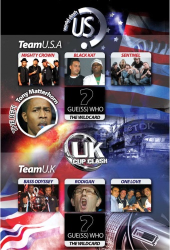 Dopo i biguppamenti vari e la spiegazione del regolamento, da una parte si piazza la squadra dello USA CupClashTeam composta da Mighty Crown, Sentinel e Black Cat e dall’altra quella dello UkCupClashTeam composta da Rodigan, Bass Oddyssey e One Love.. Si intravede Lampa e già mi prendo bene.