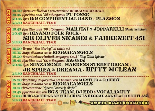 – Per concludere in bellezza, Domenica 25 la Bergamo Reggae Family si esibirà in modalità full crew: tutti i nostri sound saranno perciò presenti per il concerto finale che vedrà alternarsi sul palco